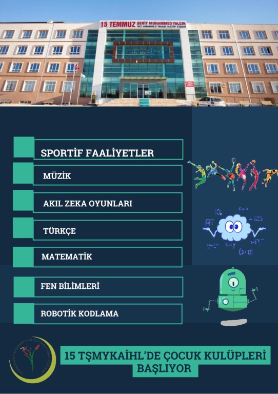5. 6. ve 7. Sınıf öğrencilerimizin hem akademik derslerde takviye alarak konu tekrarı yapabilecekleri ve Bursluluk sınavına hazırlanabilecekleri hem de sportif, sanatsal ve bilimsel çalışmalarla kendilerini geliştirebilecekleri Çocuk Kulübü faaliyetlerimizi başlatıyoruz. Türkçe, Matematik, Fen Bilimleri, Sportif ve Sanatsal Faaliyetler, Robotik Kodlama alanlarında gerçekleştirilecek olan çalışmalarımız için başvurular hafta içerisinde alınacaktır. Detaylı bilgi almak isteyen velilerimiz okul idaremize başvurabilirler.